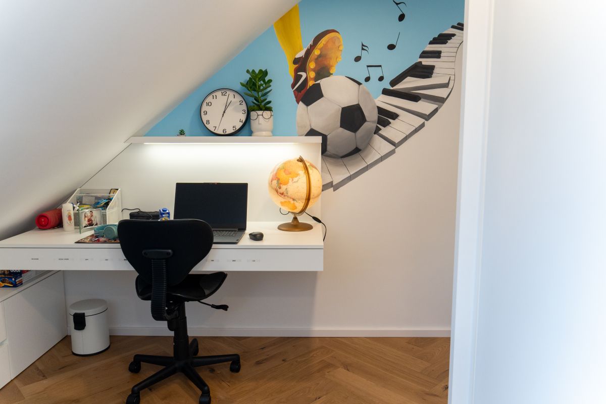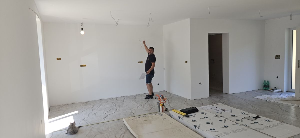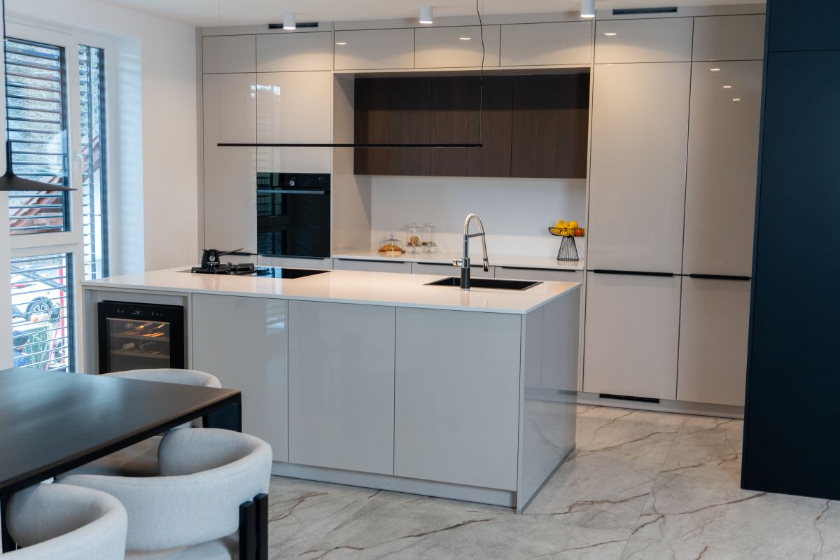 To je zagotovo kuhinja z jedilnico. Že ob načrtovanju smo si želeli, da ta prostor postane srce hiše. Velika miza je namenjena druženju, pogovorom in smehu, zraven je kotiček za počitek s klavirjem, televizijo in seveda prostor tudi za našega kužka (smeh). Tukaj kot družina preživimo največ časa.
