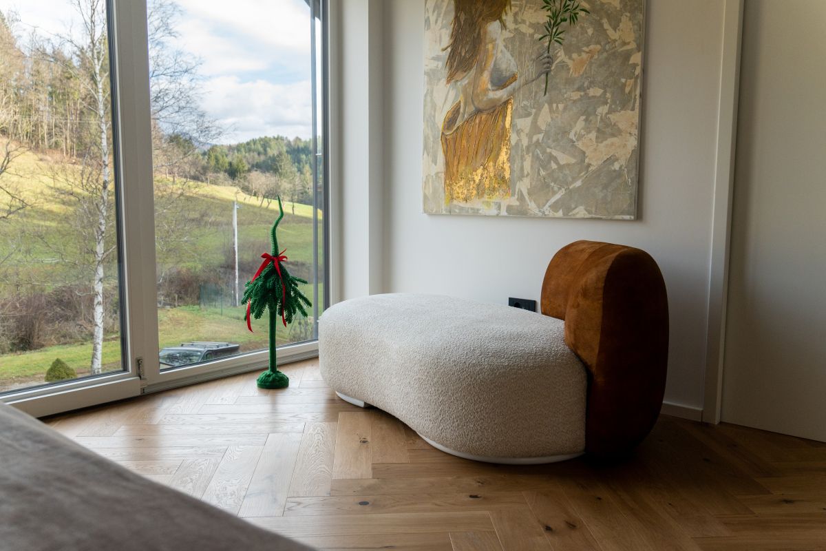 Vedno z manjšimi poudarki – sezonski aranžmaji, velikonočni detajli, spomladi več cvetja. December pa je seveda poseben: velika jelka, praznični sijaj v vseh prostorih in tudi dišave prilagojene letnemu času.