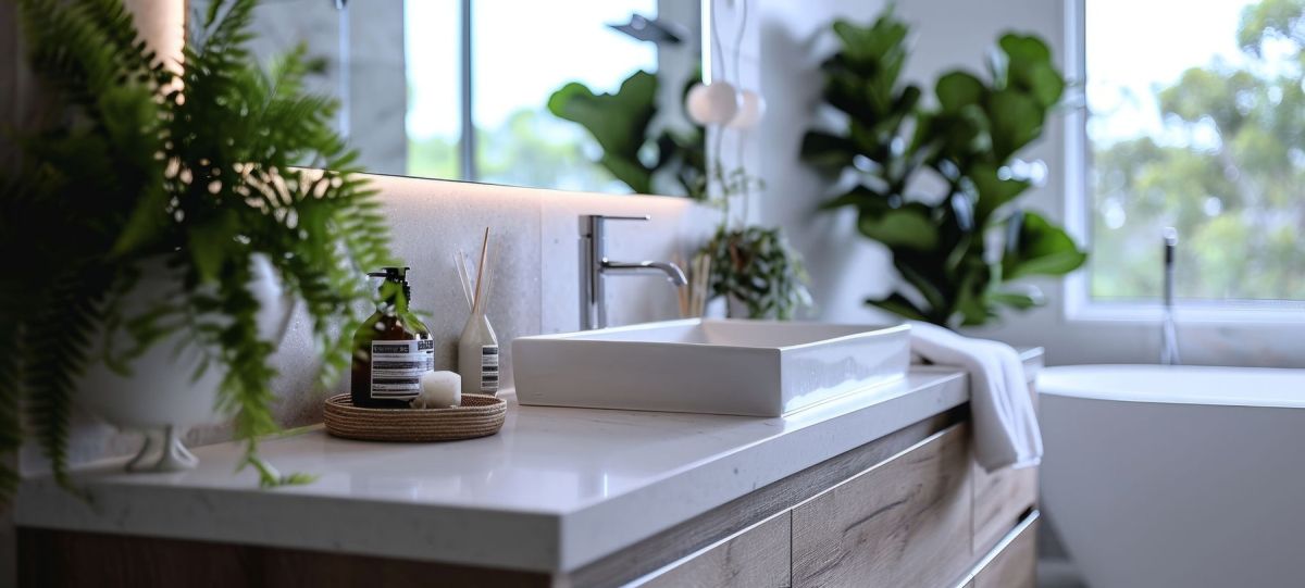 Preveč izdelkov na vidnih površinah hitro ustvari občutek zanemarjenosti, tudi če je kopalnica pravkar očiščena.
