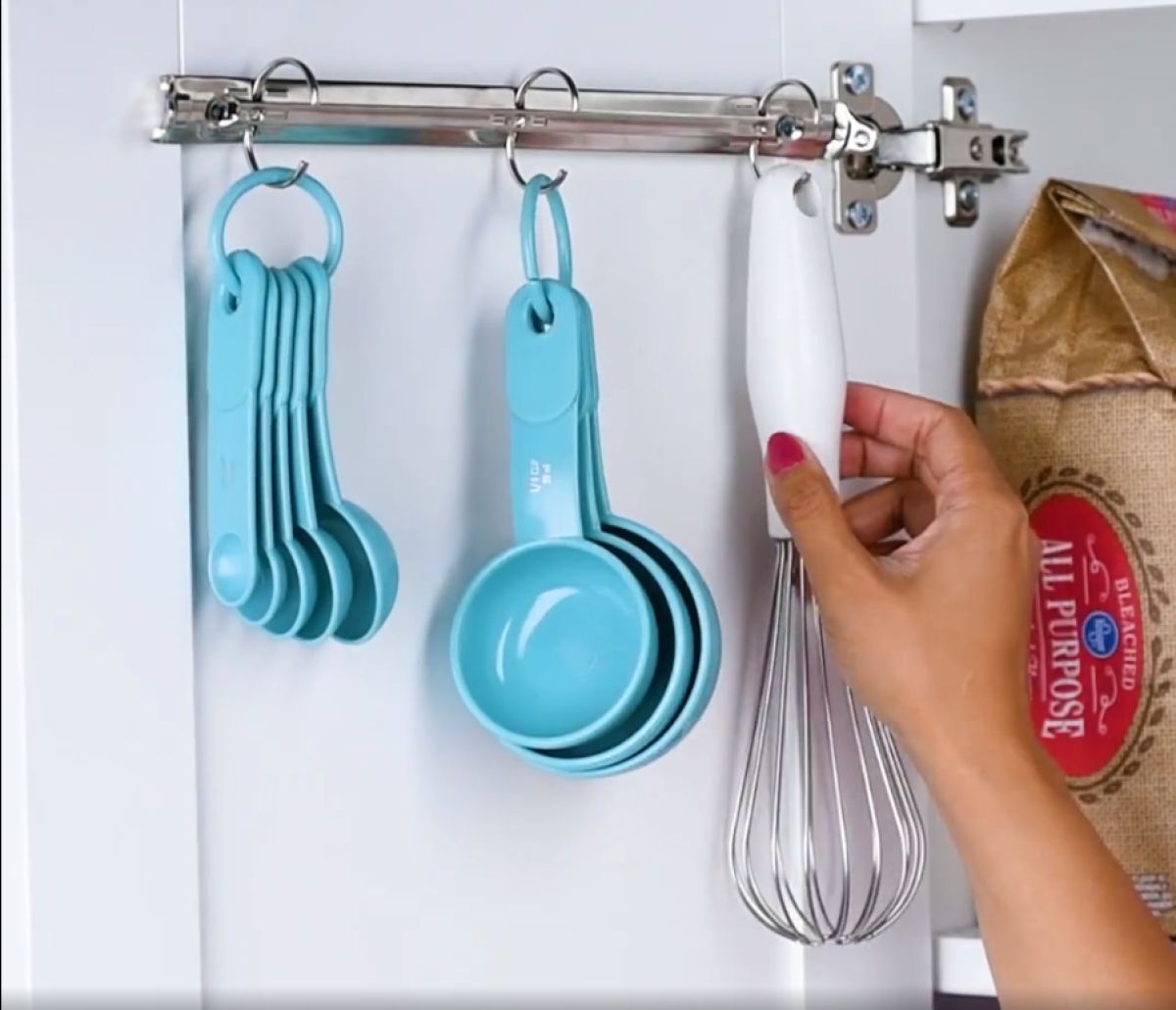 Še en odličen trik, ki bo hitro spremenil nered v vaših omarah in predalih v pregledne police. Pri tem potrebujete široke ščipalke za papir in teleskopsko palico. Na teleskopsko palico namestite ščipalke, palico pa nato privijte v zgornji del police omarice oziroma predala. Na ščipalke zdaj lahko pripnete začimbe v vrečkah, juhe iz vrečk, slane in sladke prigrizke …