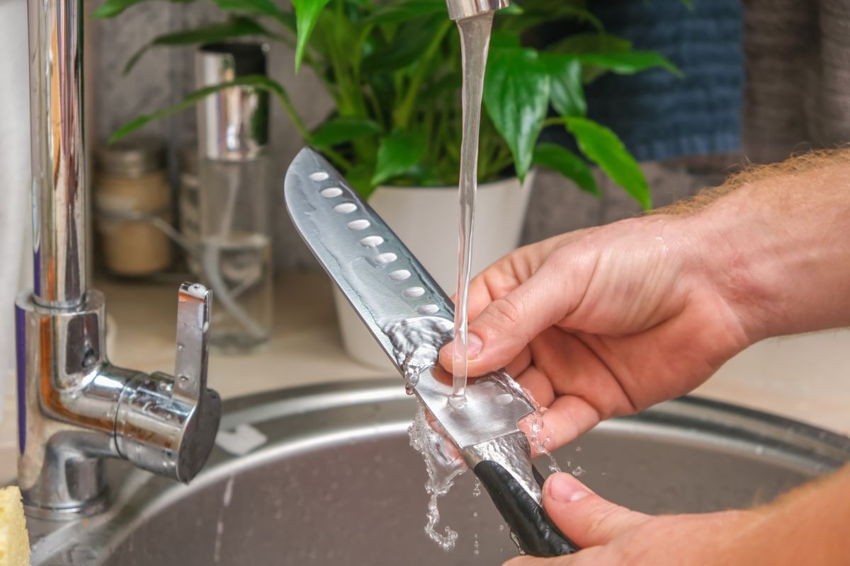 Čeprav nekateri proizvajalci dopuščajo strojno pomivanje, vročina, para in agresivni detergenti dolgoročno poškodujejo rezilo ter ročaj. Poleg tega se noži v stroju zaletavajo ob drugo posodo, kar povzroča mikro poškodbe. Zato jih raje operite ročno z blagim detergentom in takoj obrišite do suhega, nikoli jih ne puščajte namočenih v vodi. To velja tudi za nože iz nerjavnega jekla in keramike.