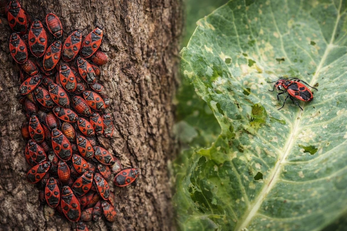 Najhitrejši namig je lokacija. Če jih opazite na tleh, ob drevesih ali zidovih, gre najverjetneje za rdečega škratca, škodljive stenice pa se bodo prej pojavile na listih zelja ali drugih vrtninah. Če gre za stenico, jo odstranite ročno, redno pregledujte rastline in po potrebi uporabite naravne pripravke proti škodljivcem.