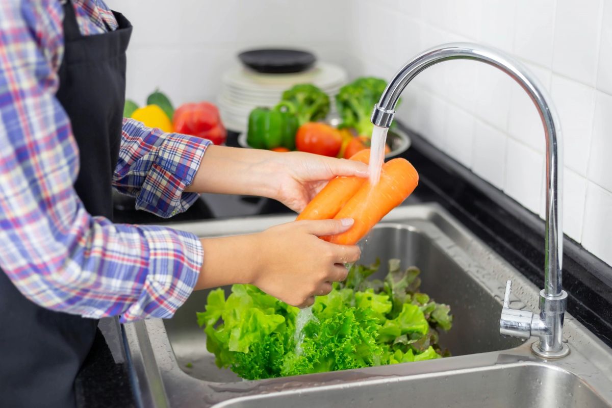Sadje in zelenjava: Tudi če so videti čisti, jih vedno temeljito operite pod tekočo vodo. Tako odstranite umazanijo, bakterije in ostanke pesticidov.