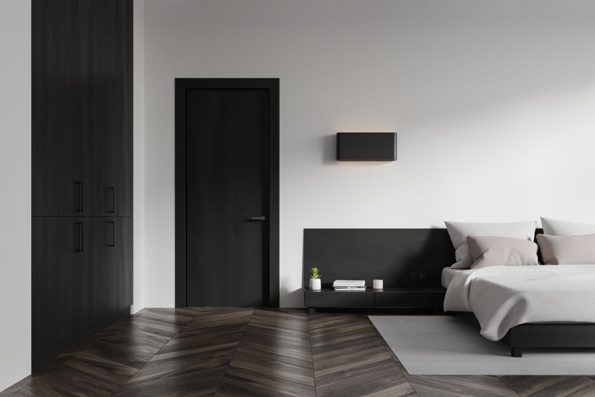 Ključno je ravnovesje: črna vrata naj imajo dovolj svetlobe, ob njih pa naj bodo svetlejše stene ali tla, da prostor ne deluje utesnjeno.