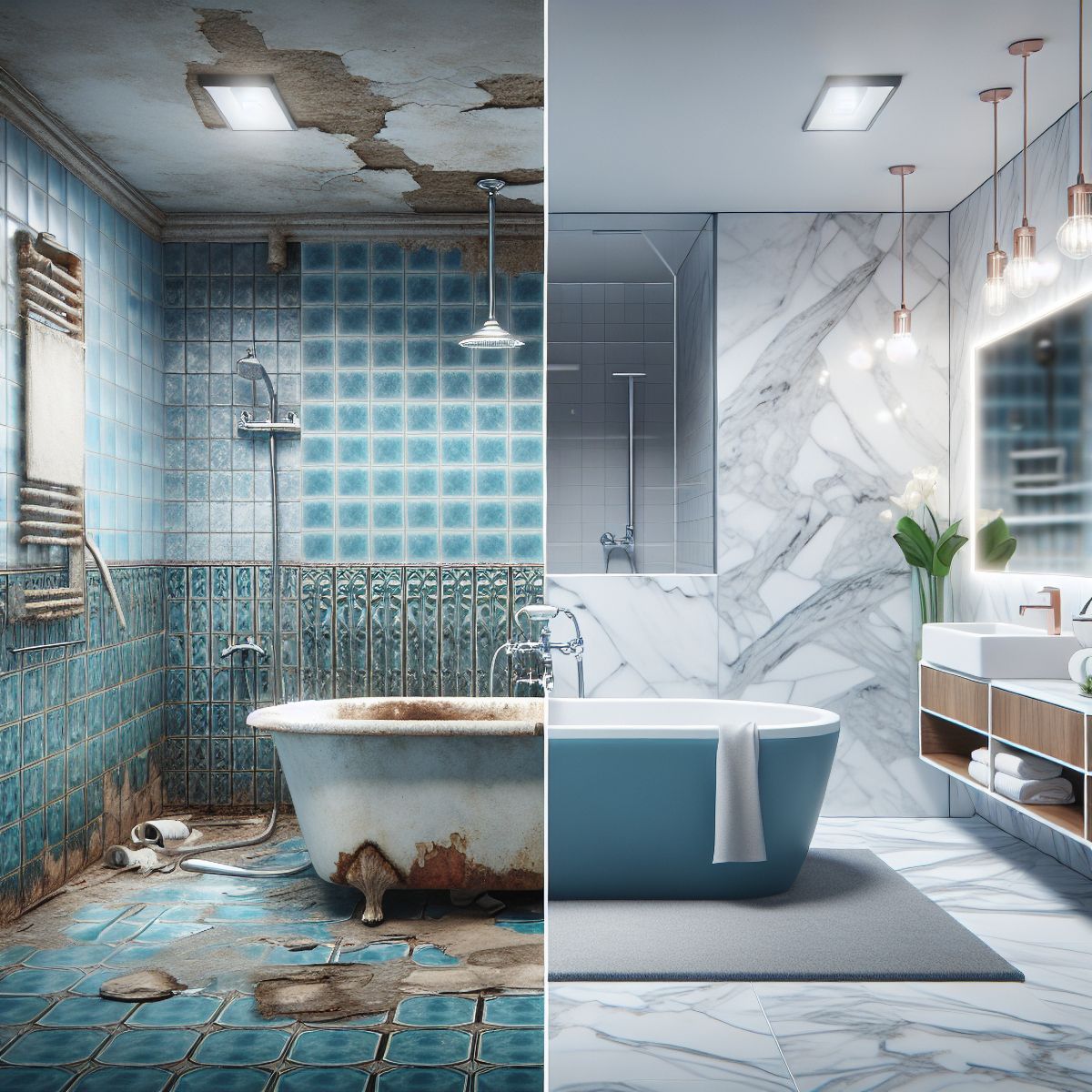 Prenova stare kopalnice z modrimi ploščicami, lesom in pametnimi rešitvami. Poglejte, kako je majhen prostor postal sodoben, eleganten in bolj funkcionalen.