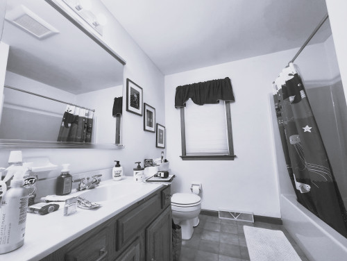 Kopalnica, velika približno 6 m², je bila prvotno opremljena z osnovnimi materiali: svetle stene brez poudarkov, starejši dvojni umivalnik iz lesa ter kombinacija kadi in prhe, ki je bila redko v uporabi. Lastniki so si želeli prostor, ki bo bolj uporaben za otroke, hkrati pa dovolj estetski tudi za goste.