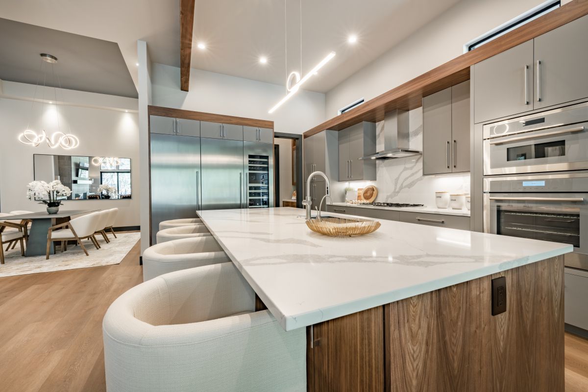Trend minimalističnih kuhinj narekuje čiste linije, ravne površine in čim manj vidnih elementov. Skriti predali se popolnoma zlijejo z okolico – pogosto so vgrajeni v oblogo nad pultom, pod zgornjimi omaricami ali celo v kuhinjski otok. Na prvi pogled jih sploh ne opazimo, ob rahlem pritisku ali potegu pa se razkrije dodaten prostor.