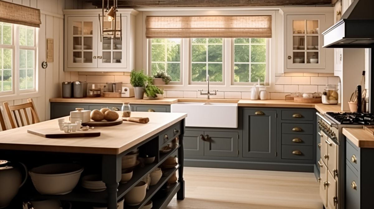 "Moderni chic” združuje rustikalne, domače elemente s čistimi linijami in sodobnimi materiali. Takšna kuhinja je funkcionalna, estetska in obenem prijazna za druženje. Z odprtimi policami, na katerih so dekorativni kozarci, lesene deske ali sveža zelišča, ustvarite prijetno in živahno kuliso. Sodobni detajli, kot so temne kovinske pipe, minimalistične luči in geometrijske linije omaric, dopolnjujejo rustikalno osnovo in ustvarijo elegantno harmonijo. Praznični dekor, kot so venčki, sveče in naravni materiali, prostoru doda še dodatno toplino in praznično vzdušje.