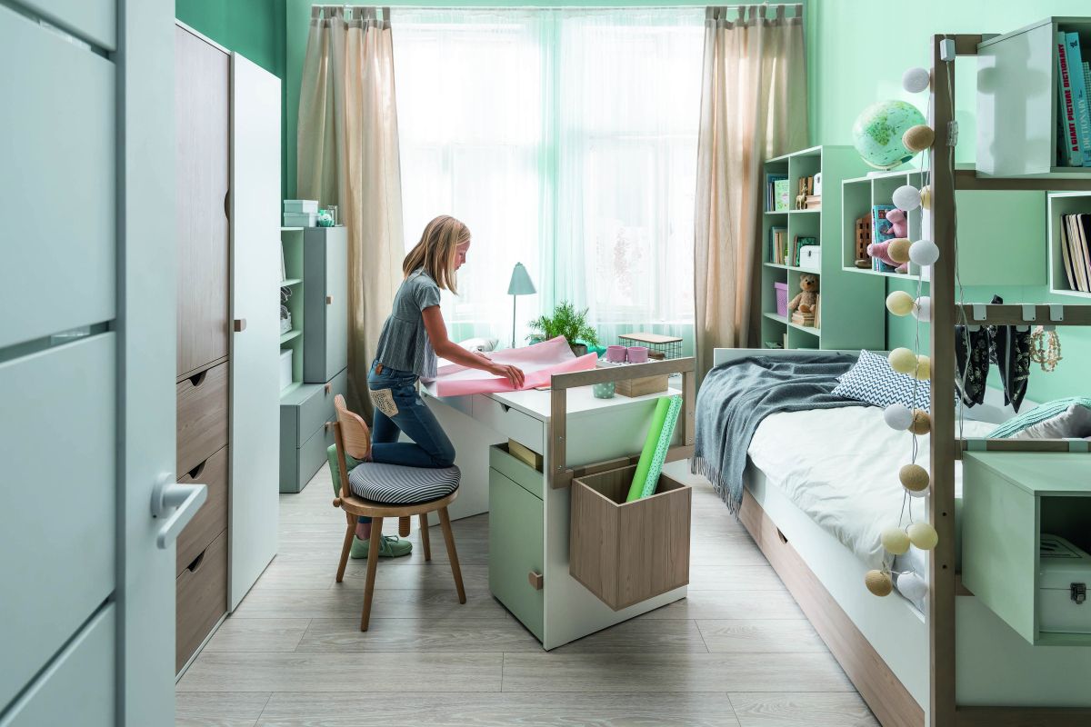 Nevtralne barve in naravni materiali so najboljši temelj za otroško pohištvo. Z barvami ni treba pretiravati, saj motijo šolarjevo osredotočenost in ga odvračajo od pomembnejših opravkov.