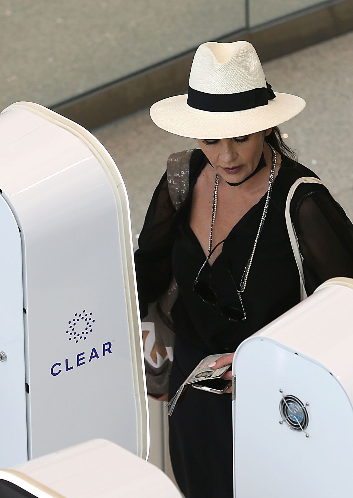 Catherine Zeta-Jones na letališču povsem zakrita, šele žeja je razkrila, kdo se skriva za masko