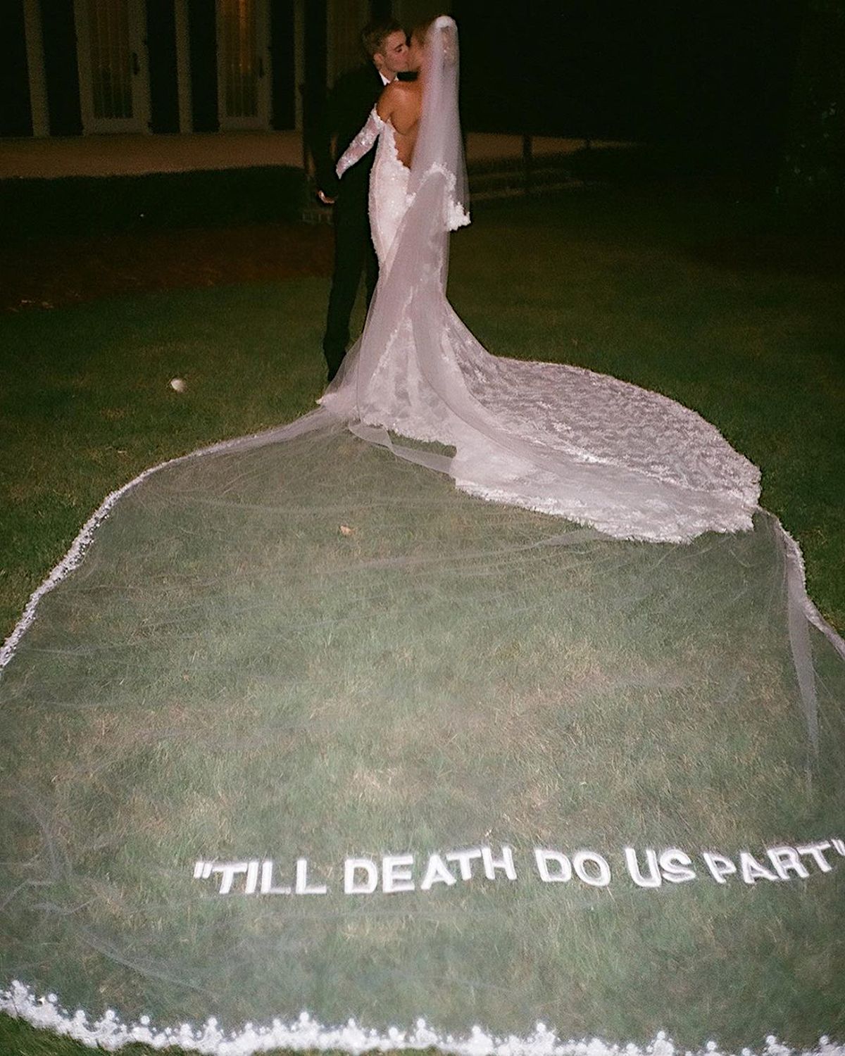 Nanje se Justin in Hailey nista odzvala. Je pa kljub temu, kar malo čudno, da tako mlado dekle, kot je Justinova žena, ob poroki je štela rosnih enaindvajset let, sploh nosi tančico s tako dokončnim napisom.
