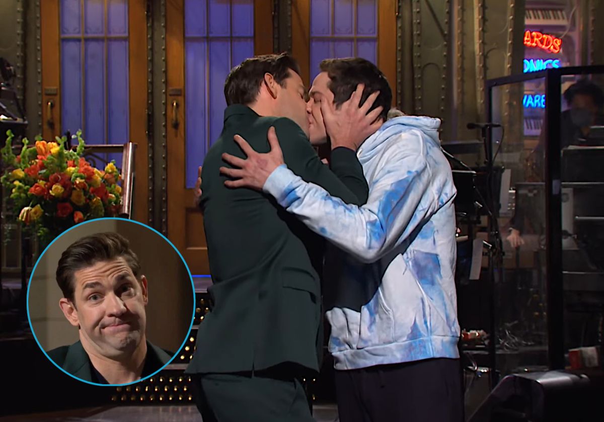 »Seveda ni, to je, kot vidite Pete Davidson.« Nato se je začelo bučno vzklikanje »poljubi Pam«, Pete pa ga je spodbujal, naj vendar ustreže občinstvu. John ni čakal dolgo, v kamero je pogledal s tipičnim izrazom Jima, prijel je Davisona za obraz in ga poljubil na usta. Izzval je navdušenje med občinstvom, ki je v resnici sestavljeno iz sodelujočih pri oddaji.
