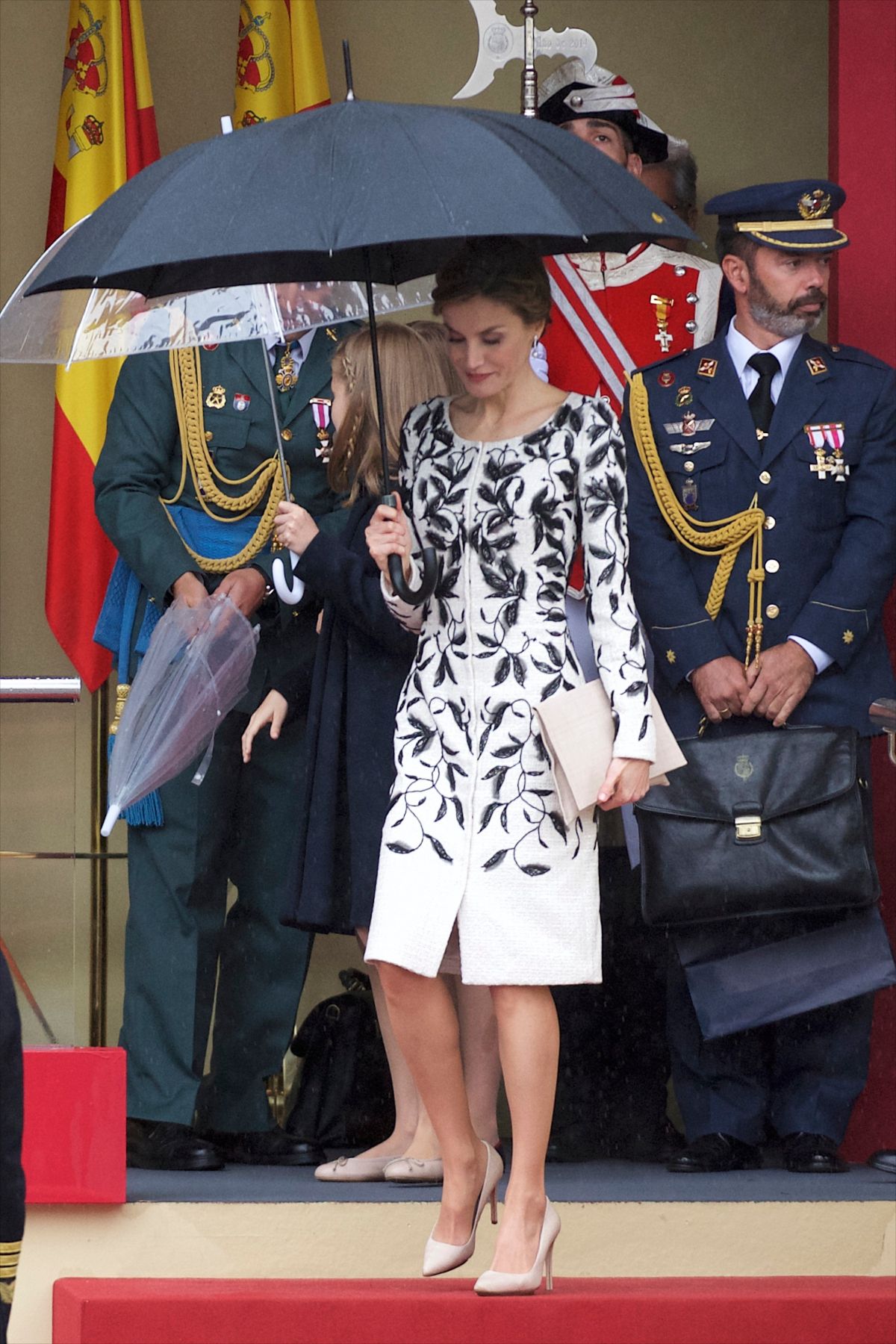 Pred kraljevo ložo v Madridu se je ob prazniku pred nekaj dnevi sprehodilo več kot 3000 slovesno opravljenih vojakov, oficirjev in drugih funkcionarjev v pisanih svečanih opravah, a nič manj občudujočih pogledov, kot jih je bil deležen sprevod, so prisotni namenili tudi kraljevi družini.