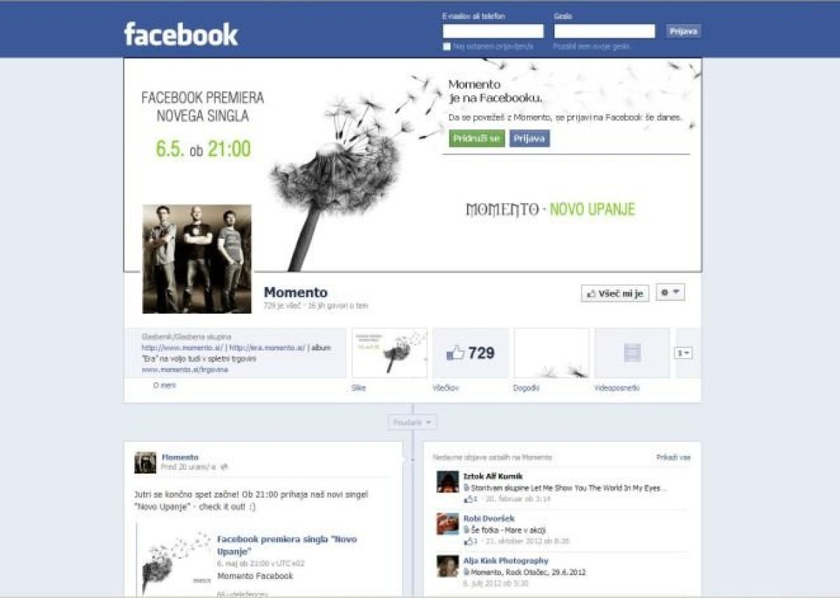 Premiera singla Novo upanje bo na Facebook strani skupine Momento, in sicer 6. maja 2013 ob 21. uri.