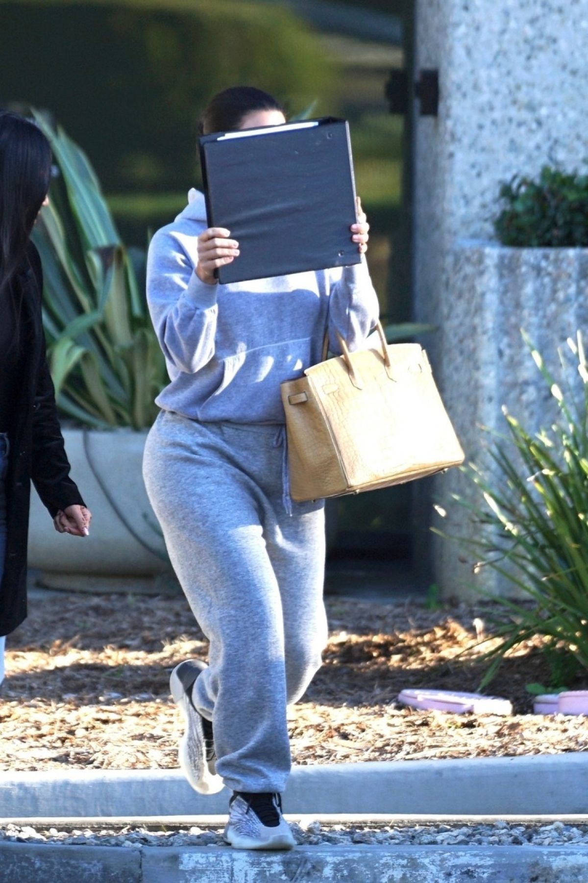 Včeraj so jo zalotili, kako je zapuščala poslovne prostore, ki pripadajo njenemu možu Kanyeju Westu. Le redki bi ob taki priložnosti resničnostni zvezdnici pripisali sramežljivost, a fotografije razkrivajo, da se je skušala pred paparaci skriti. Kar s pomočjo mape.