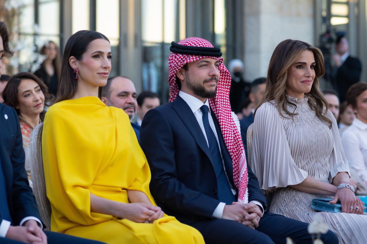 Princesa Iman in kraljica Rania sta izbrali umirjene tone za svoja slavnostna oblačila, medtem ko je Rajva Al Saif, zaročenka jordanskega prestolonaslednika Huseina (brata princese Iman), s svojo kanarčkasto rumeno obleko vnesla nekaj živahnosti. Obleko znamke Roksanda je odlično kombinirala z minimalistično zlato pisemsko torbico luksuzne italijanske blagovne znamke Bottega Veneta.