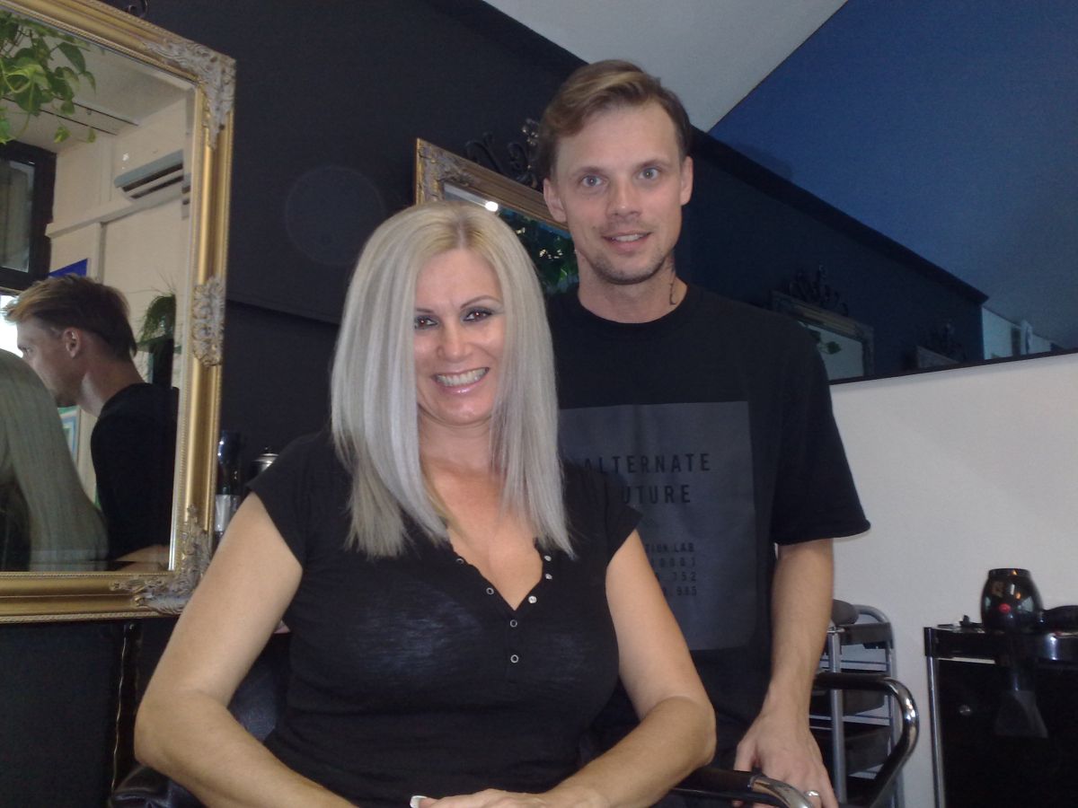»Že dolgo sem si želela lase srebrno sive barve, vendar za to nisem imela poguma. Moj dragi frizer Sebastjan Oblak ima veliko izkušenj z znanimi Slovenci, temu primerno zahtevnimi in še sitnimi, kot sem jaz, zato me je prepričal in pričaral čudovito sivo barvo, ki se preliva s prejšnjo blond. Takoj sem si bila všeč,« je zadovoljno dejala Suzana, Sebastjan pa je pripomnil, da bi se za to barvo moralo odločiti več deklet. »Siva kljub umetnemu tonu poživi obraz in še neškodljiva za lase je,« je poudaril Suzanin frizer. »Pa še skrije moje naravno sive lase, ki jih imam žal že od 20. leta,« je v smehu dodala Suzana, ki dekletom priporoča, naj se odločijo za to barvo. Če jim ne bo všeč, si bodo lase pač prekrile z drugo barvo.