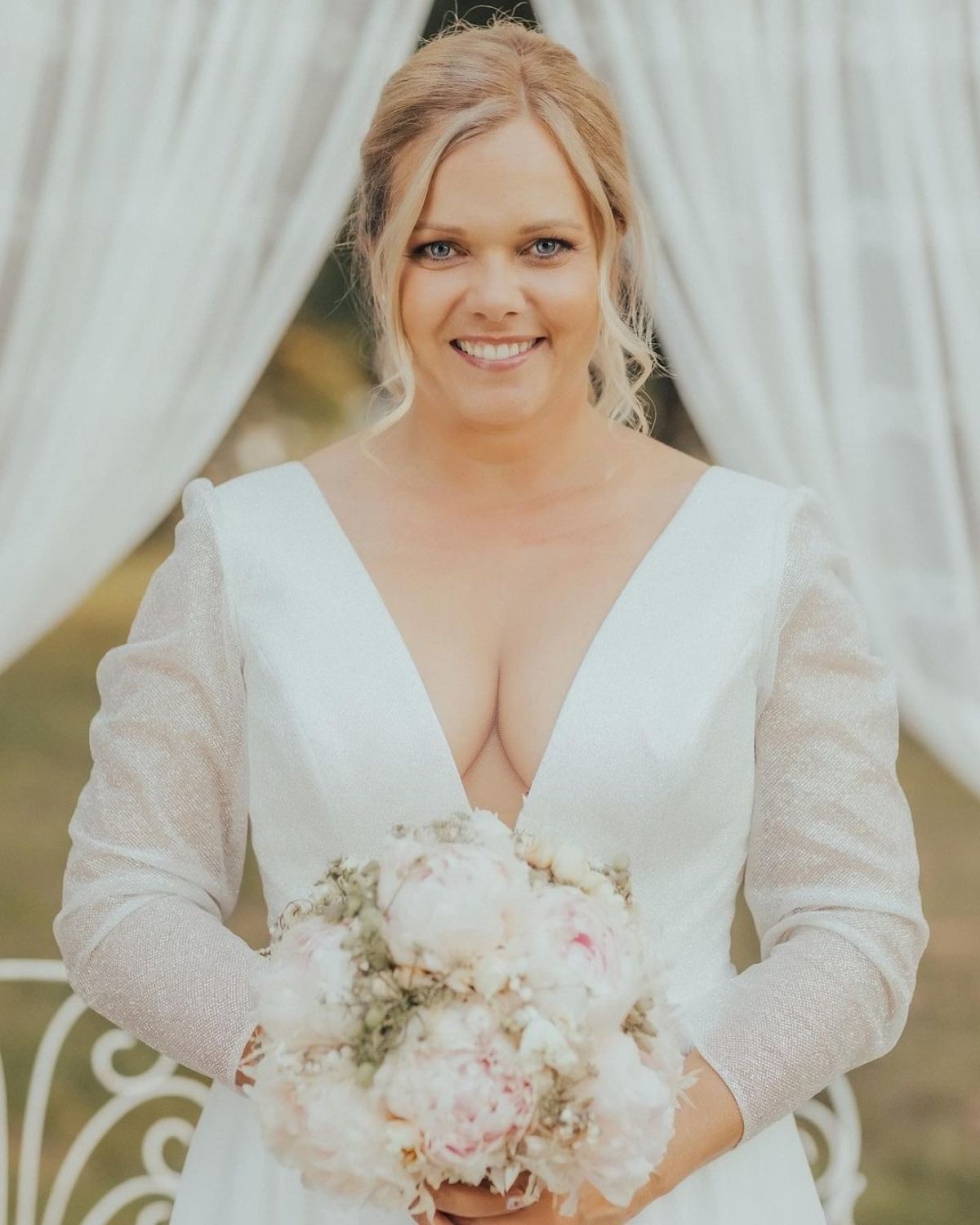 Voditeljica Špela Močnik je dahnila usodni da in na svoj poročni dan je zares uživala. Zdaj pa je pokazala tudi poročno obleko, ki je vzela dih. Šlo je za belo, precej preprosto krojeno obleko, ki pa je imela res zelo seksi dekolte. Špela je bila čudovita nevesta in verjetno jih ne bo malo, ki si bodo pri njej izposodile idejo za poročno obleko. Špelina sreča je zdaj popolna. »Bil je najlepši dan. Življenje z njim je, kot pojejo Sestre – Samo ljubezen,« je zapisala Špela in mi ji seveda želimo, da bi trajalo večno.