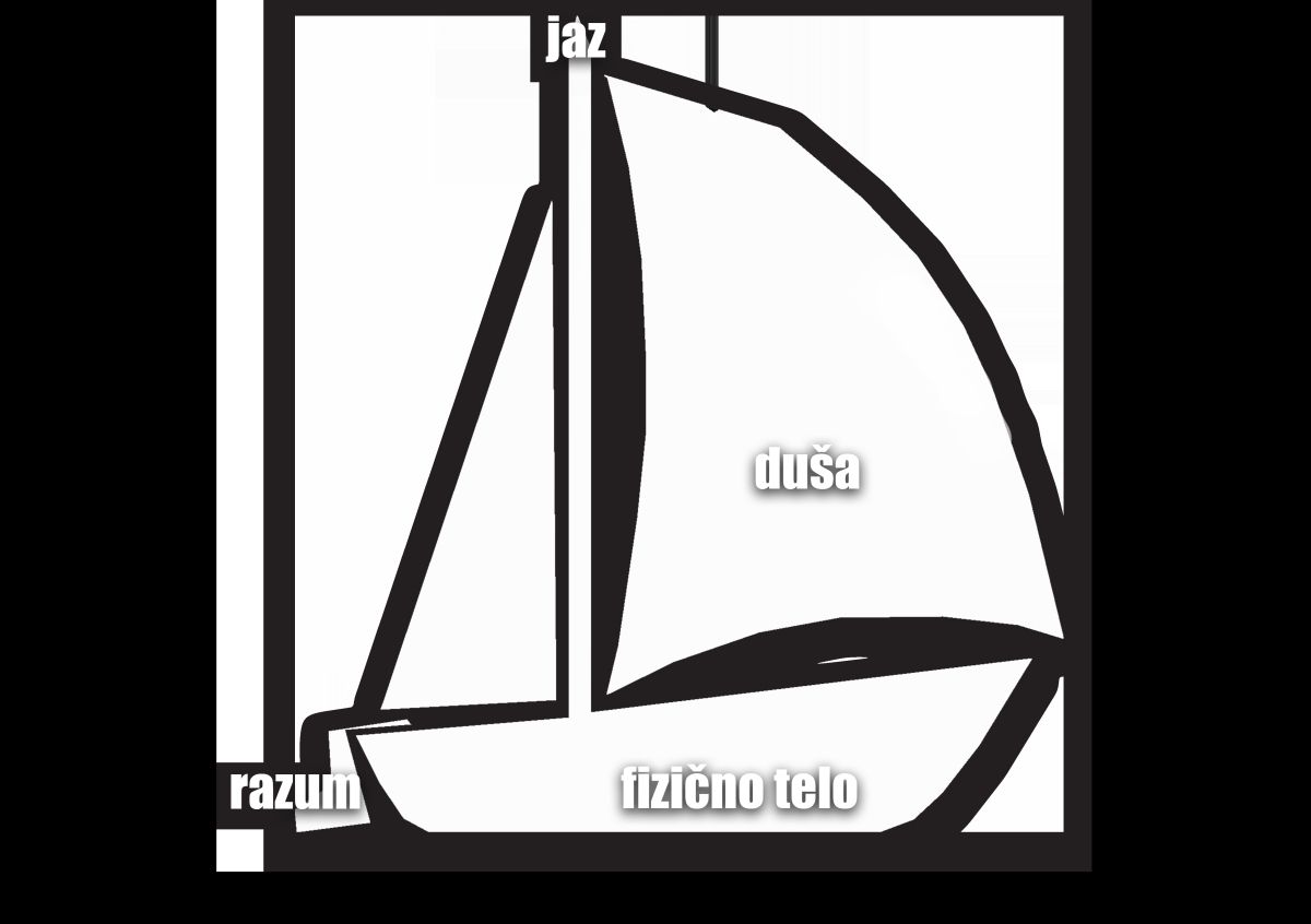 Sebe si predstavljajmo kot barko: njeno dno predstavlja naše fizično telo, jambor predstavlja jaz, krmilo naš razum in jadro z vetrom predstavlja dušo. Komponente osebnosti so: fizično telo, razum, jaz (višji jaz in ego) ter duša. Te se med seboj prepletajo, dopolnjujejo ali pa si nasprotujejo.