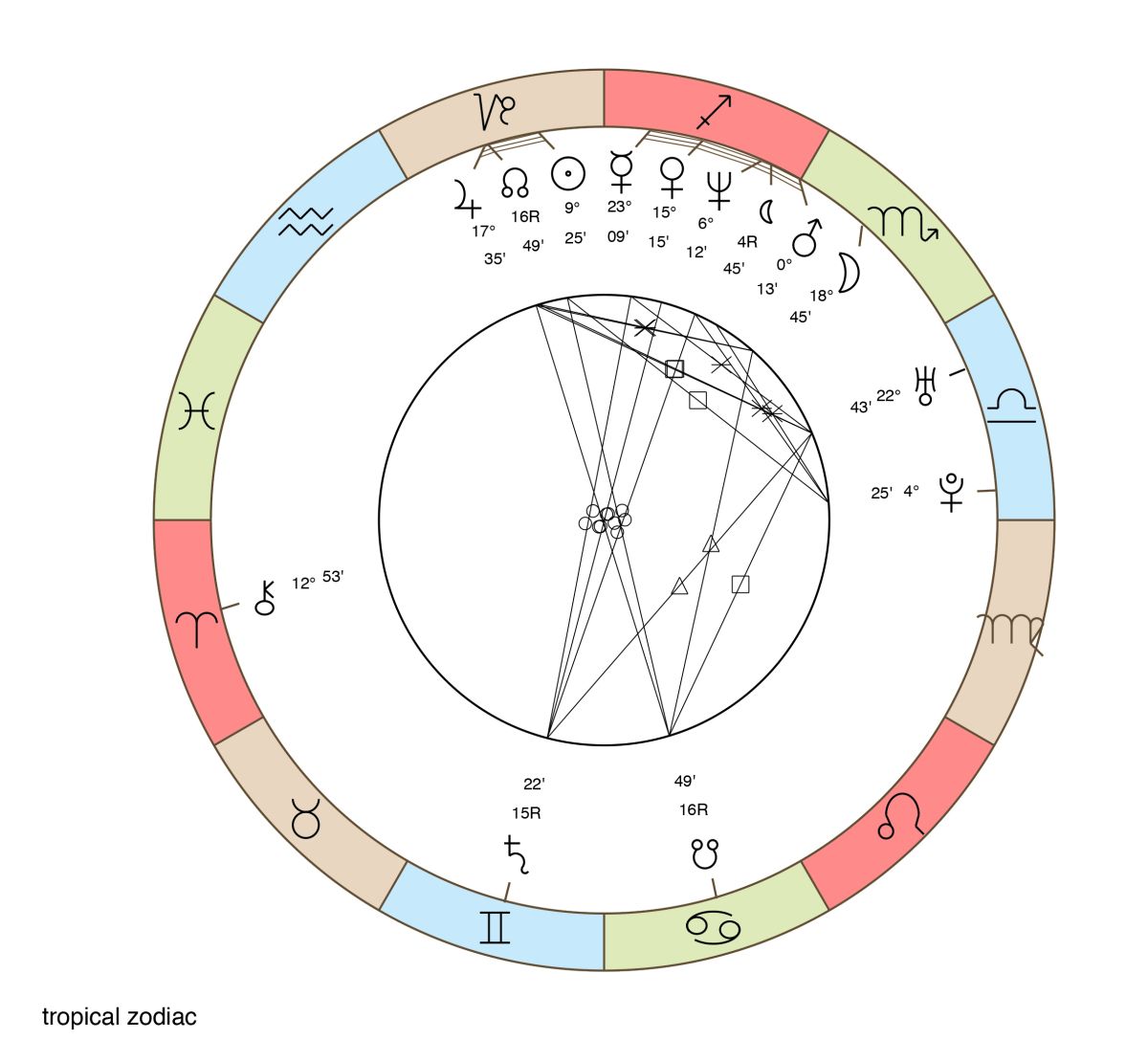 Tudi sicer ima v znamenju strelca, ki podpira potovanja in stik s tujino, kar pet pomembnih planetov. To pomeni, da ima dobro filozofijo življenja in da se zelo dobro znajde v tujini in v sodelovanju z različnimi ljudmi.