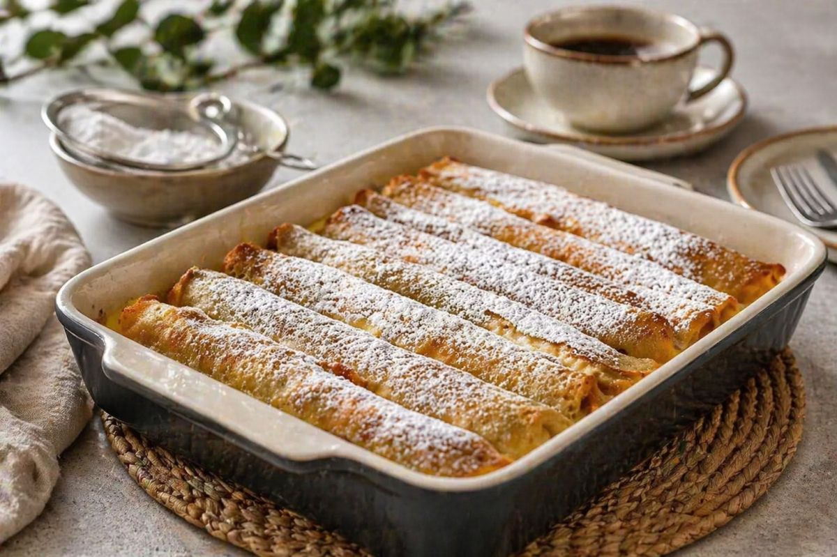 Postopek ostaja preprost in preverjen. Spečemo tanke palačinke, pripravimo skutni nadev, nadevane palačinke pa zvijemo in zložimo v pekač. Ko jih prelijemo in zapečemo, dobimo jed, ki združuje mehko in sočno notranjost ter rahlo zapečeno površino.