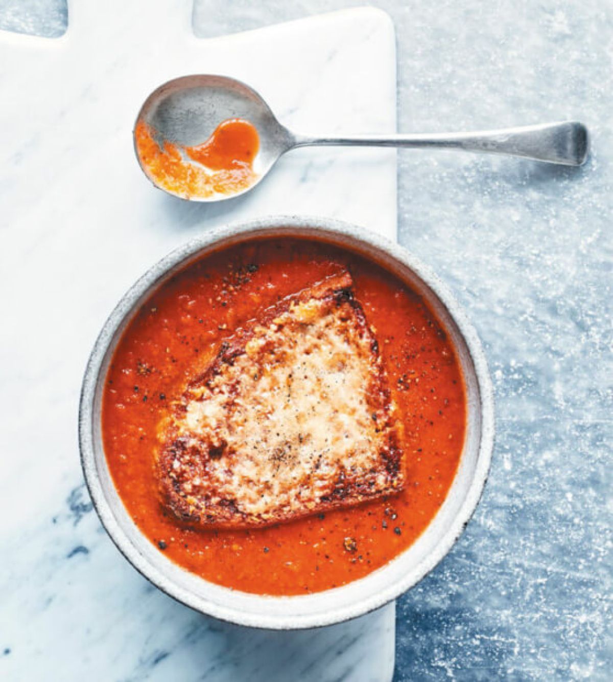 Kremna paradižnikova juha je pripravljena iz osnovnih sestavin, ki jih imamo vedno pri roki. Sirovi kruhki, zapečeni do zlato rjave barve, dodajo hrustljav kontrast in iz preproste juhe ustvarijo samostojen obrok.
