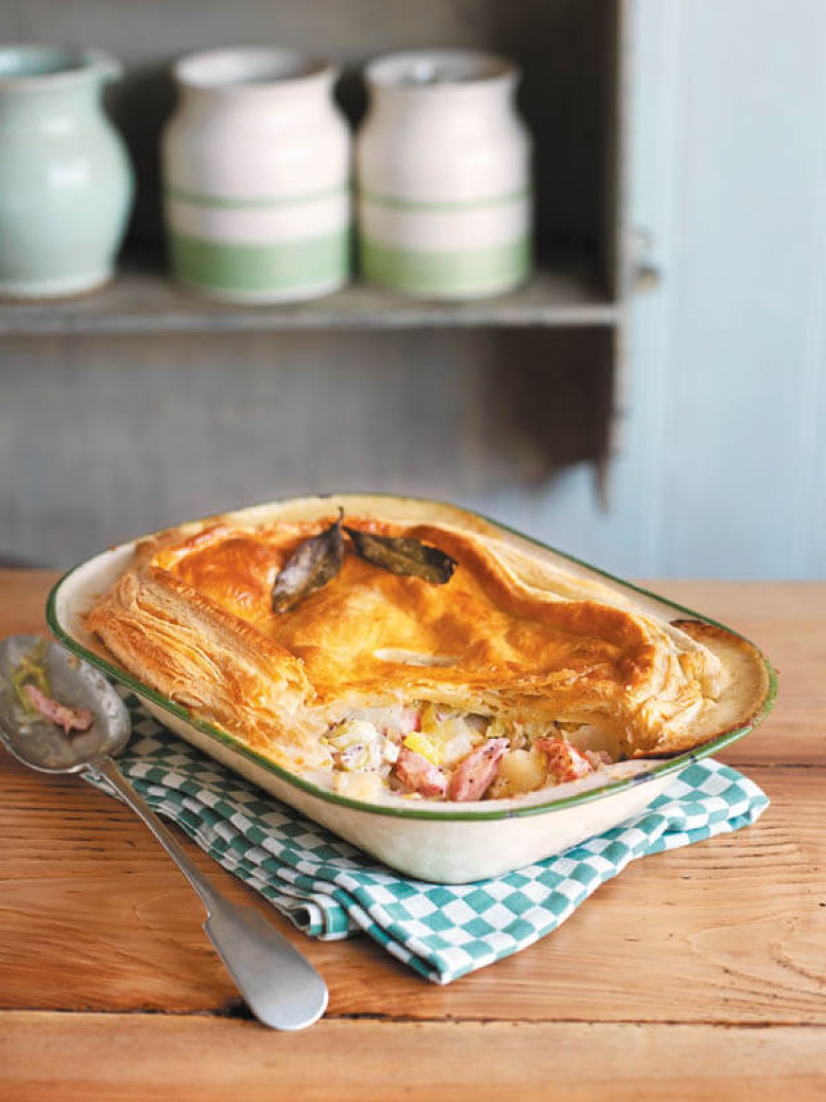 Večerja: Pokrita pita s šunko, porom in krompirjem