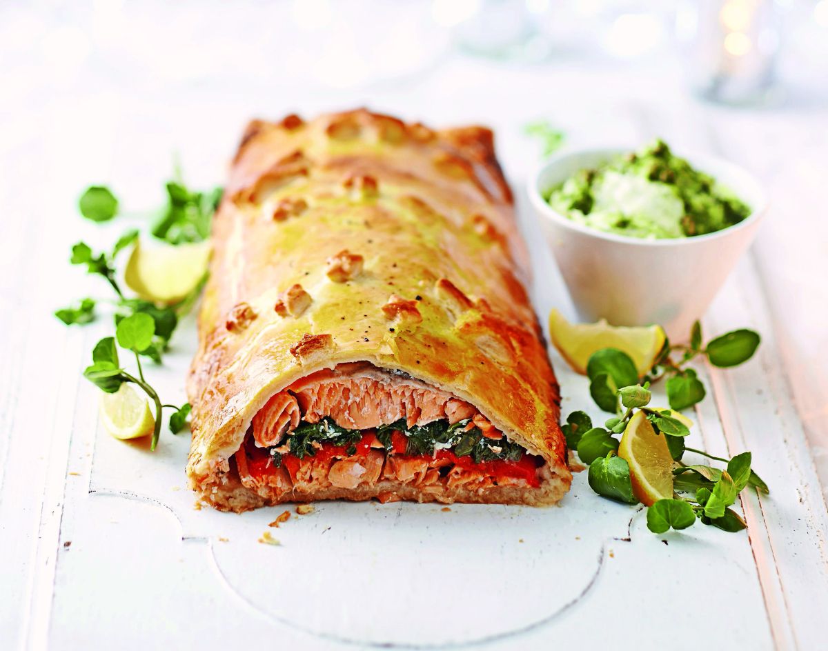 Kar nekaj receptov za ribe v listnatem testu se je nabralo v arhivu Dober tek, vendar je ta losos eden naših favoritov. Za ta recept je pomembno, da kupite dva podobno velika in debela kosa lososovega fileja, da se bo pečenka enakomerno spekla.