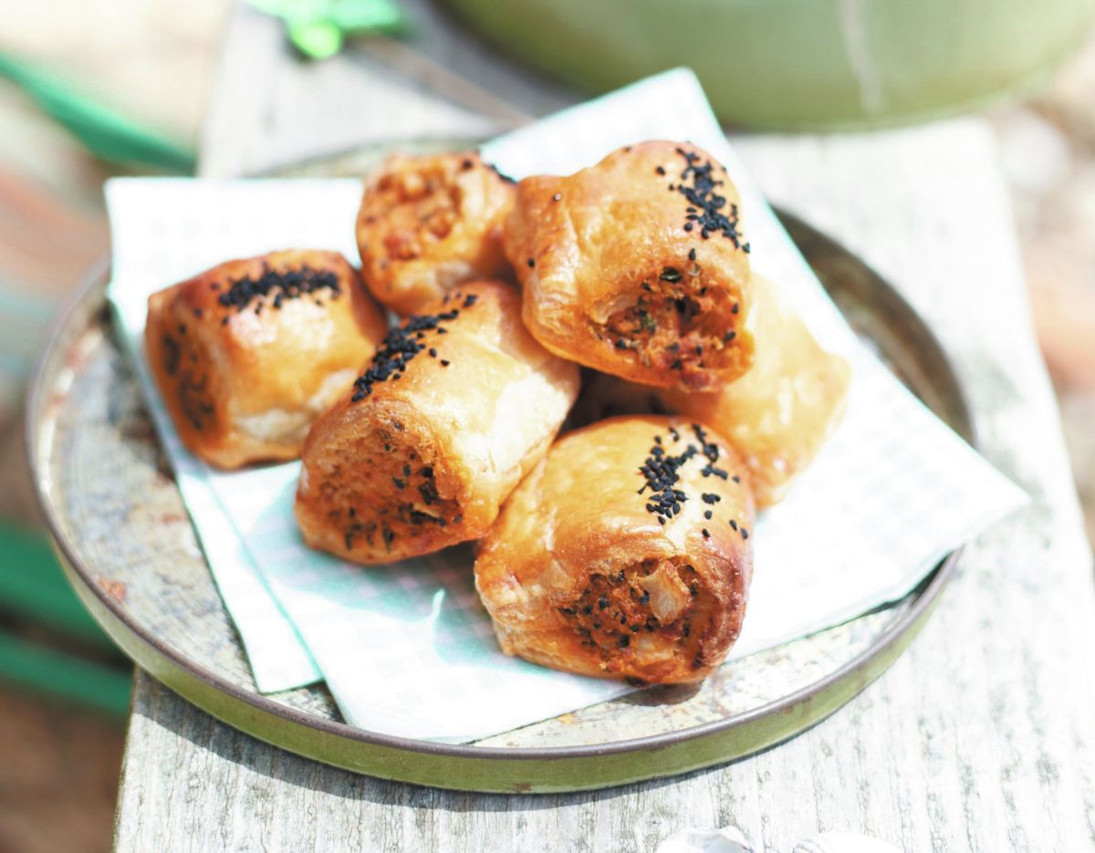 Tokrat smo izbrali prigrizek, za katerega v listnato testo zavijemo maso iz klobas in pretlačenega krompirja. Odlično za piknik ali zabavo!