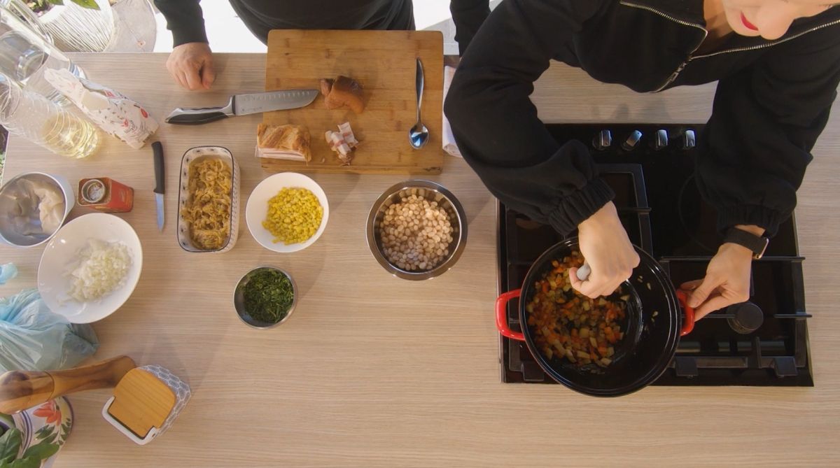 Ko osnova zadiši po kuhinji, sledi tisto, kar mineštri da dušo – fižol, koruza in kislo zelje. Vse skupaj zalije z vodo, posoli, doda mleto sladko papriko in poper ter pusti, da se okusi povežejo v harmonično, gosto enolončnico, ki je hkrati jed in zdravilo.