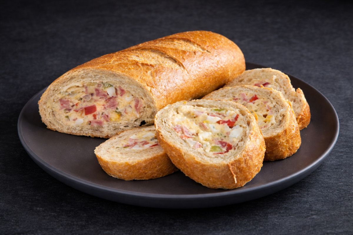Polnjena francoska štruca že od nekdaj velja za preprost in domiseln prigrizek za raznovrstna slavja, pa tudi piknike, saj jo lahko pripravimo vnaprej in zlahka postrežemo.