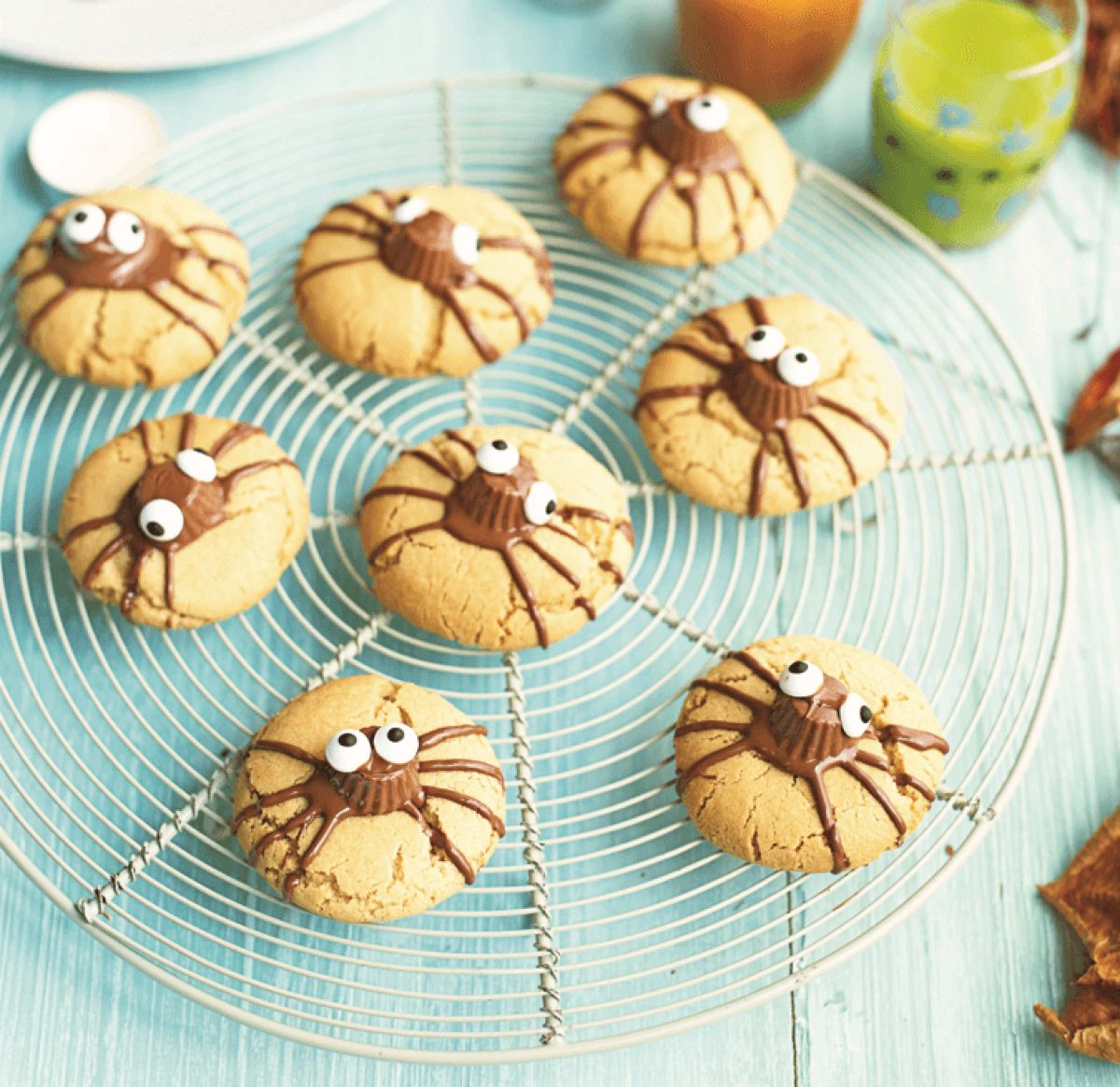 Čokolada in arašidovo maslo sta popolna kombinacija, ljubki pajkci pa poskrbijo, da so ti piškoti prava paša za oči.