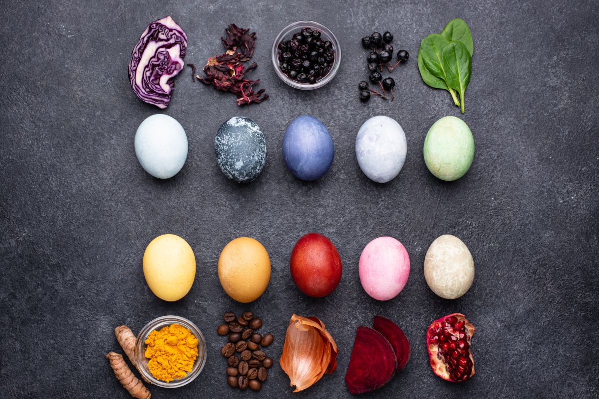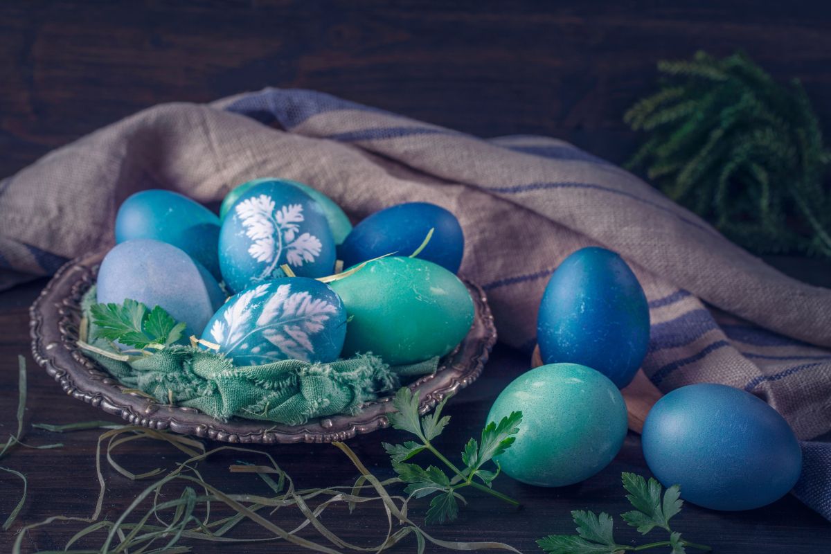 Uporabimo lahko tudi naravna barvila, kot so kurkuma, rdeča pesa ali špinača, ki v kombinaciji s sodo ustvarijo mehkejše, a še vedno zanimive tone. Ker barva ne prekrije jajca enakomerno, so vidni sloji in prehodi, ki poskrbijo za še živahnejši videz.