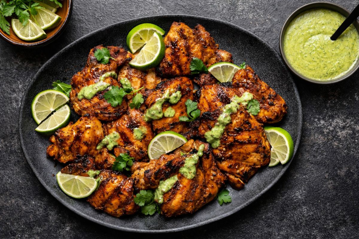 - Piščanca razporedimo po pladnju, zraven pa ponudimo ohlajeno omako in rezine limete.