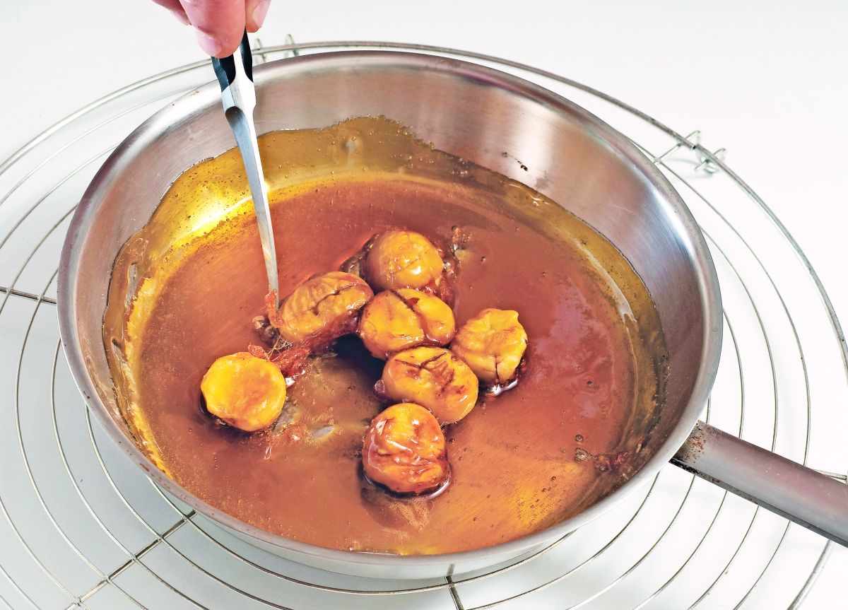 Kostanj v sirupi s konjakom bo imenitna priloga sladoledu