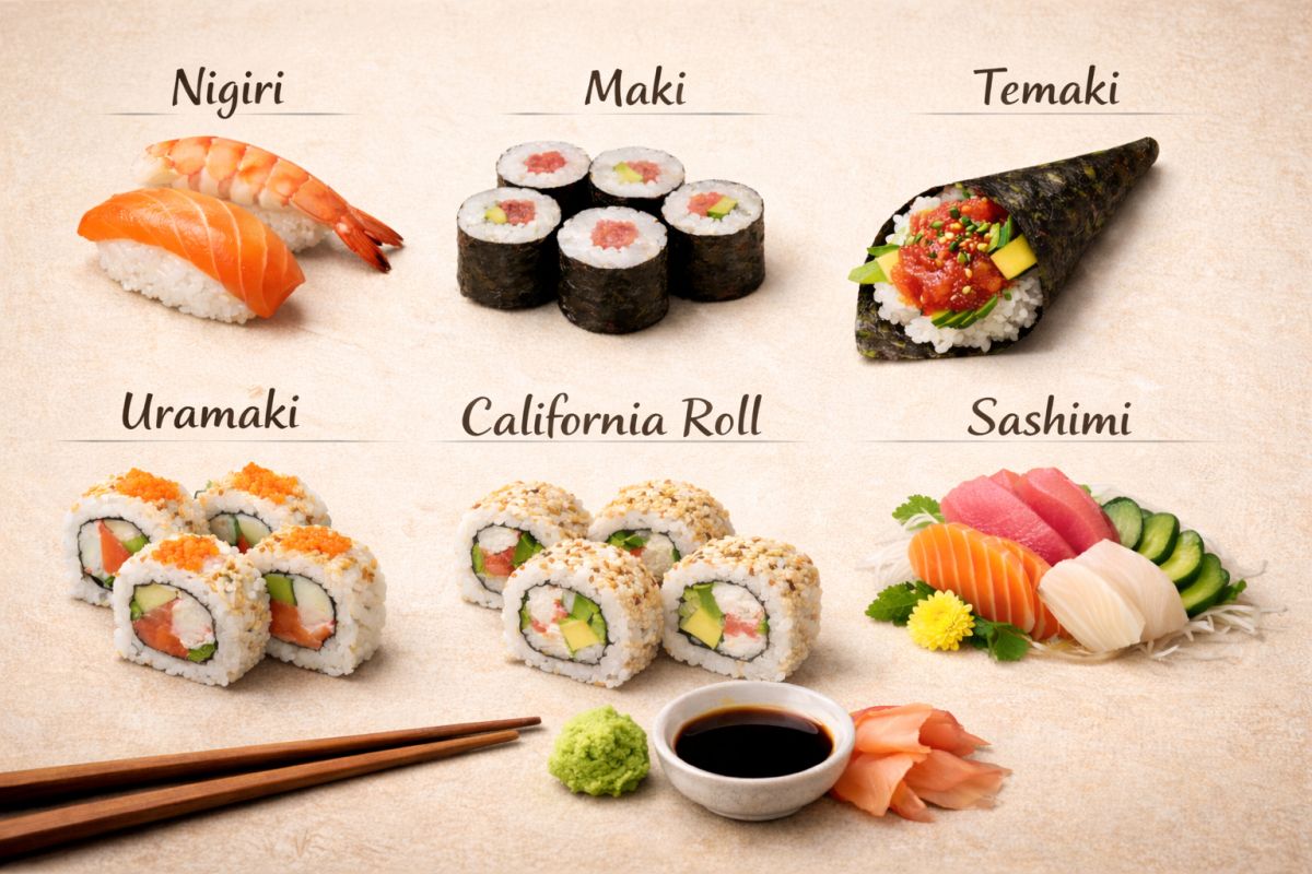 Kako pravilno jemo suši in kakšna je razlika med nigiri, maki, uramaki in temaki zvitkom? Pripravili smo kratek in jasen vodič za sproščen obisk suši restavracije.