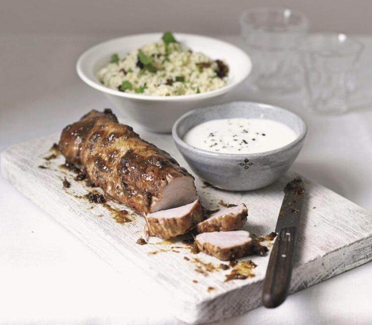 Pečen svinjski file s kuskusom in ingverjevim jogurtom