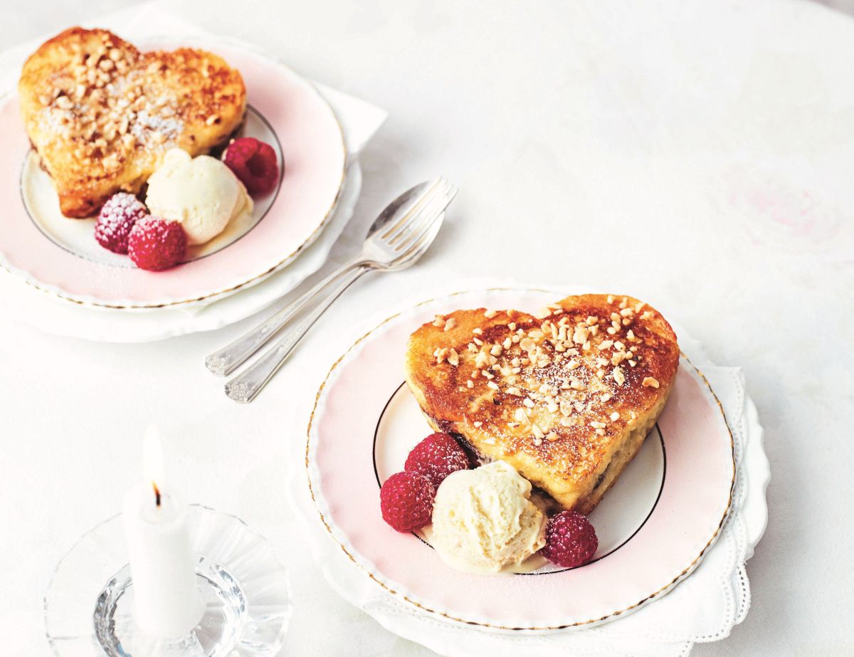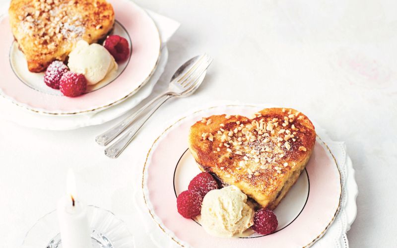 Valentinove šnite temeljijo na večni klasiki iz kruha, jajc in mleka, le da smo jih tokrat oblikovali v srčke in pospremili z najljubšim čokoladnim namazom.