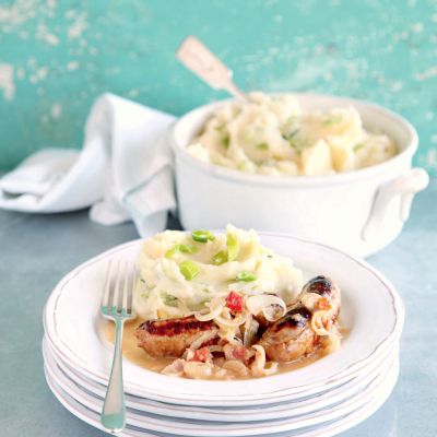 Klobase in krompirjev pire sta že preizkušena kombinacija, omaka z jabolčnikom pa je nekaj novega in posebnega.