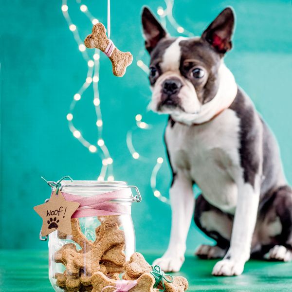 Z modelčki iz testa izrežemo kosti ali druge oblike ali pa testo razrežemo na kvadratke. Položimo jih na pekač, obložen s papirjem za peko, in pasje priboljške pečemo 15 do 20 minut oziroma toliko časa, da se zlato obarvajo.