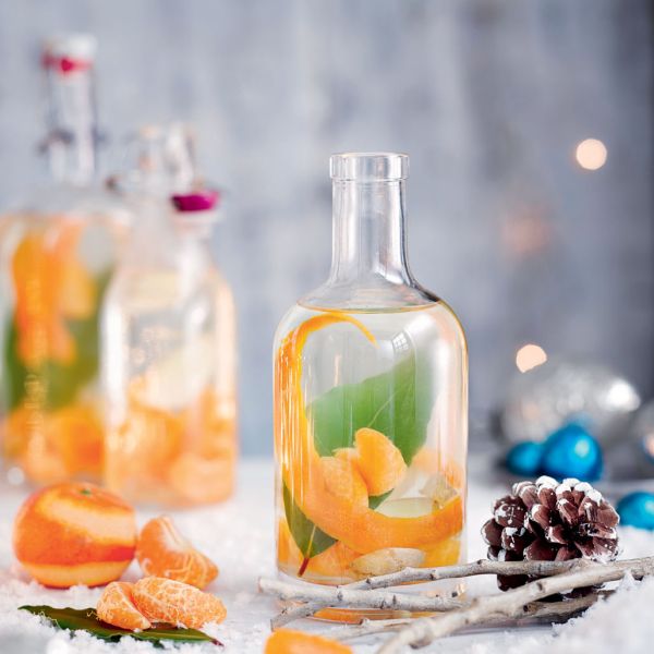 Krhlje klementin ali citrusov in trakce lupinice damo v džin ter dodamo še sladkor, ingver in lovorove liste.