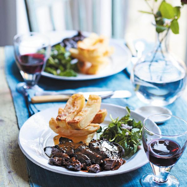 Govedina, dušena v stoutu, s pečenim krompirčkom