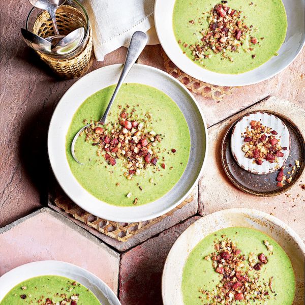 Grahova juha z jabolčnikom in meto ter hrustljavimi krutoni s panceto