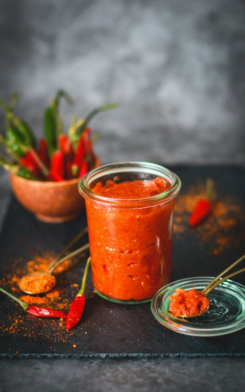 Čilije na hitro splaknemo, jih razpremo in odstranimo semena in peclje. Zložimo jih na prt in pustimo dan ali dva, da se sušijo, nato jih zmeljemo v kuhinjskem strojčku. Dodamo česen, začimbe in sol, premešamo in maso še dvakrat zmeljemo, da dobimo gosto pasto, ki je koncentrirana harisa. Preložimo jo v kozarec in ga dobro zapremo.