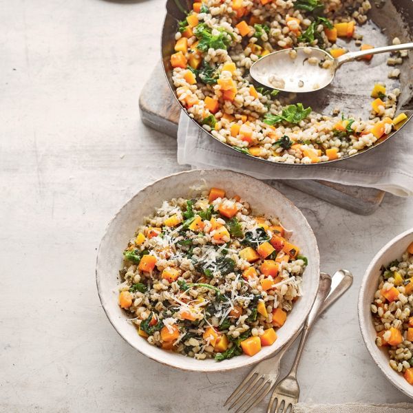 Dodamo špinačo in kuhan ješprenj, solimo in popramo ter prilijemo jušno osnovo. Nežno zavremo in kuhamo 4 do 5 minut, da špinača upade. Po želji dodamo še malo jušne osnove ali vode. Ko je ričota gosta in kremasta, pokusimo, če potrebuje še kaj začimb, soli ali popra. Primešamo ji večino parmezana, jo razdelimo na krožnike, posujemo s preostalim parmezanom in po vrhu nameljemo črni poper.