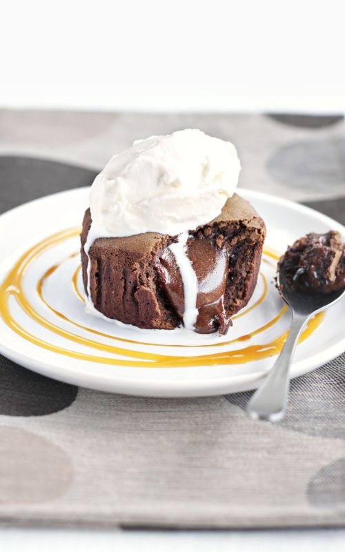 Pečico segrejemo na 180 °C in vanjo na srednjo višino postavimo pekač. Čokolado drobno nastrgamo. Z maslom premažemo 4 modelčke za sufleje s prostornino 2 dl in vanje z žlico vsujemo malo nastrgane čokolade. Vsak modelček nagnemo in zavrtimo, da čokolada enakomerno prekrije dno in stranice, kar je ostane, pa stresemo ven.