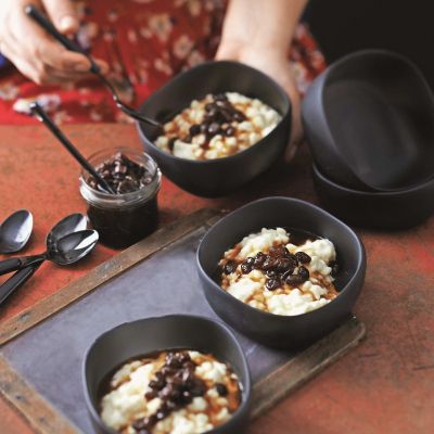 Mlečni riž z aromatičnim sirupom, ki še posebno paše v hladnih dneh