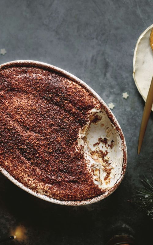 Ohlajeno kavno razdelimo na tri dele. V en del vmešamo brendi in vanj pomočimo 7 piškotov savoiardov, ki jih nato drugega poleg drugega zložimo na podolgovat servirni pladenj. Pokrijemo jih s tretjino kavne kreme in potresemo s tretjino sesekljane čokolade. Drugi del kave zmešamo z rumom, vanj pomočimo mandljeve piškote in jih zložimo na čokolado. Pokrijemo jih z drugo tretjino kreme in potresemo s polovico preostale čokolade.