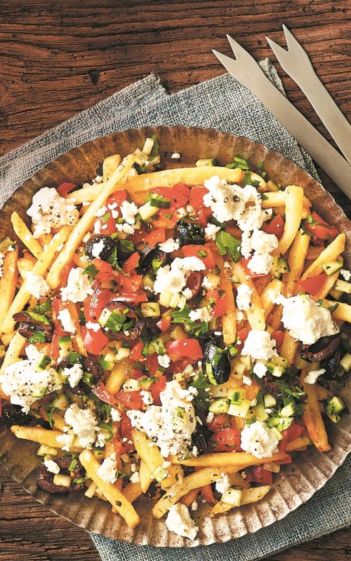 Krompirček ocvremo po navodilih na embalaži. V ponvi segrejemo še malo olja, nanj stresemo čebulo in jo pražimo 10 minut. Dodamo česen in čilijeve kosmiče ter pražimo še 5 minut. Nato dodamo paradižnik, origano in sladkor ter pustimo rahlo vreti 10 minut.