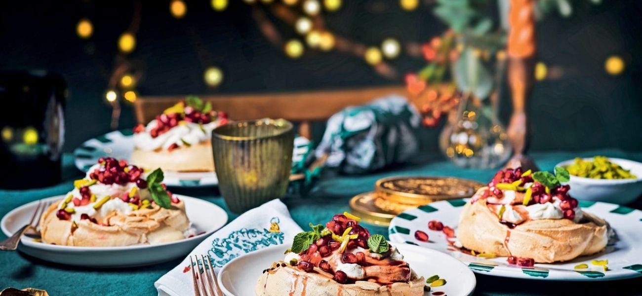 Mini pavlove z rožno aromo in granatnim jabolkom
